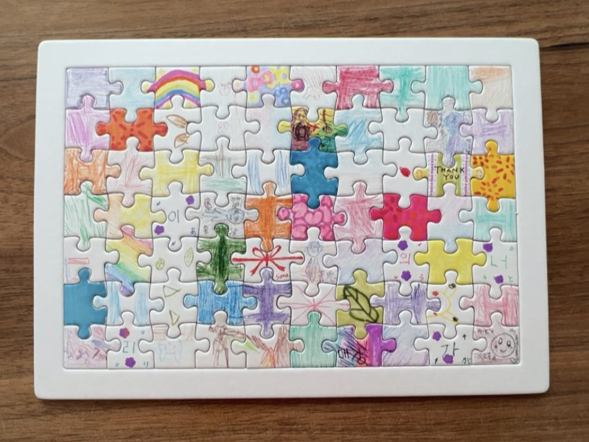 ピースを組み立てている動画と完成画像、お子様一人一人の参加の様子や講師が見つけた長所をまとめたレポート(フィードバック)をお送りいたします。